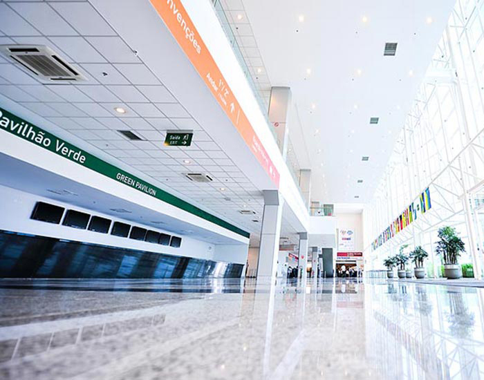巴西圣保羅北方展覽中心Cidade Center Norte是圣保羅面積最大的展覽中心,同時也是拉丁美洲最重要的展覽中心,它位于圣保羅城市北區,建筑面積超過98,000㎡,內部安裝有先進的設施,符合各類型活動的場地及設備需求。圣保羅北方展覽中心共建有1個大堂、4家餐廳、5個展館、22間會議中心:大堂面積達到4,562㎡,可同時進行5個展會+22個小型活動的注冊、簽到、招待工作;4家餐廳的用餐環境優雅,可容納1,610位現場人員同時用餐;5個現代化展館全部安裝獨立的空調系統,確保展館涼爽舒適,展覽中心高7.5米,共計有75,758㎡的室內展覽面積,分為藍館、白館、綠館、紅館和黃館,五彩繽紛、整齊劃一、并排分布,構成圣保羅北方地區一道引人注目的風景線;22個會議中心配備先進的音頻、視頻設備,可同時容納4,500位參會人員,是舉辦會議、論壇或研討會的理想地點。