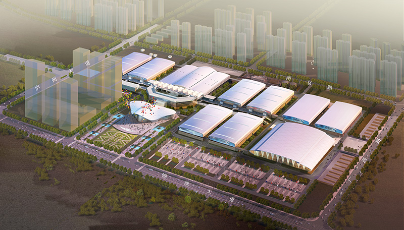 Hefei Binhu International Convention and Exhibition Center is a large public project jointly invested by Hefei People’s Government, Hefei Binhu New District Construction Investment Co.,Ltd and Hefei Key Engineering Construction Administration. Located in Binhu New Area, Hefei Binhu International Convention and Exhibition Center covers a land of 58.62 hectares, with a total construction area of about 332,800 square meters. The construction area of the first phase project is about 179,600 square meters, including a registration hall, a main exhibition hall and six standard exhibition halls, which can accommodate 4,600 standard booths in total. The indoor exhibition area is 91,000 square meters, the outdoor 15,500 square meters, the convention area 15,000 square meters and the usable area 2,100 square meters. The convention area houses several meeting halls or meeting rooms with seating capacities from 100 to 400 people and meeting halls which can accommodate 800 to 1200 people. The exhibition halls are equipped with a parking lot that can provide 1,000 stalls for cars and there are more than 4,000 temporary parking stalls on the ground. After the full completion of hall 1,2,3,4 of the second phase, the indoor exhibition area will reach 140,000 square meters, which can satisfy various exhibition needs.