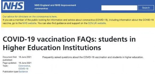 英國(guó)NHS發(fā)布了針對(duì)英國(guó)大學(xué)生的疫苗接種指南,其中有專門為留學(xué)生準(zhǔn)備的Q&A。
