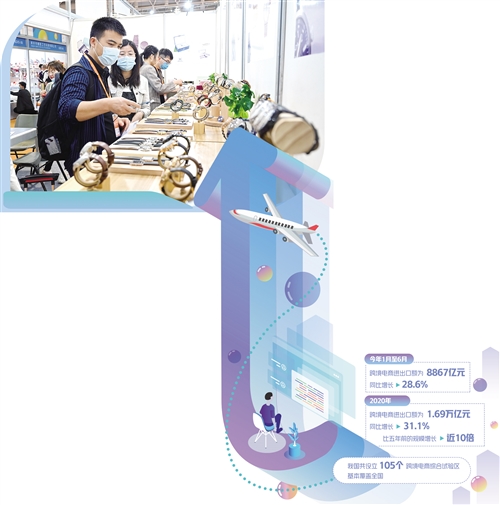 “今年1月至6月,跨境電商進出口額為8867億元,同比增長28.6%。”日前舉行的“2021中國電子商務大會”跨境電商論壇上,商務部外貿司副司長張力表示,跨境電商已成為我國發展速度最快、潛力最大、帶領作用最強的外貿新業態。
