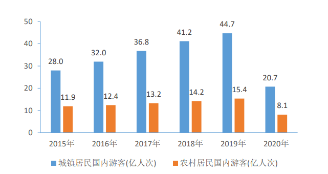 圖5 2015-2020年國內(nèi)旅游城鄉(xiāng)客源市場