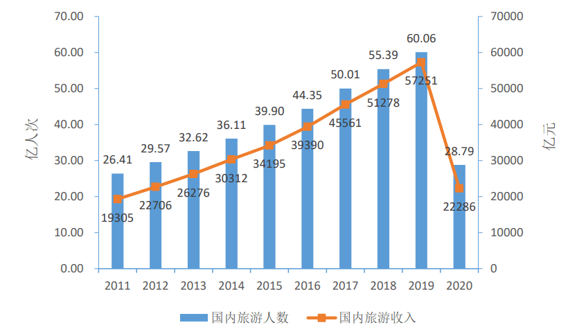 圖1 2011-2020年國內(nèi)旅游規(guī)模