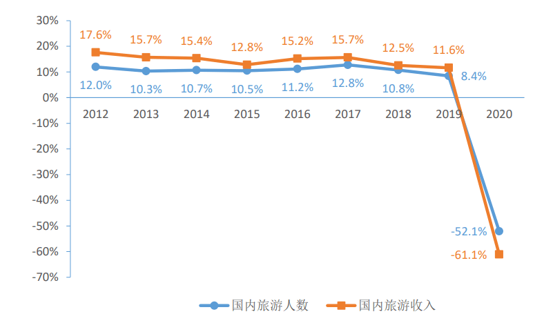 中國旅游研究院(文化和旅游部數(shù)據(jù)中心)發(fā)布了《中國國內(nèi)旅游發(fā)展年度報(bào)告2021》報(bào)告指出,受新型冠狀病毒肺炎疫情影響,2020年國內(nèi)旅游人數(shù)28.79億人次,與2019年相比下降一半;國內(nèi)旅游收入2.23萬億元,比2019年相比下降六成。2021年“十四五”開局之年,旅游業(yè)逐步恢復(fù),旅游經(jīng)濟(jì)預(yù)期相對樂觀,預(yù)計(jì)2021年國內(nèi)旅游人數(shù)將達(dá)到39.15億人次,國內(nèi)旅游收入將達(dá)到3.31萬億元,同比分別上升36%和48%,分別恢復(fù)至2019年同期水平的65%和58%。