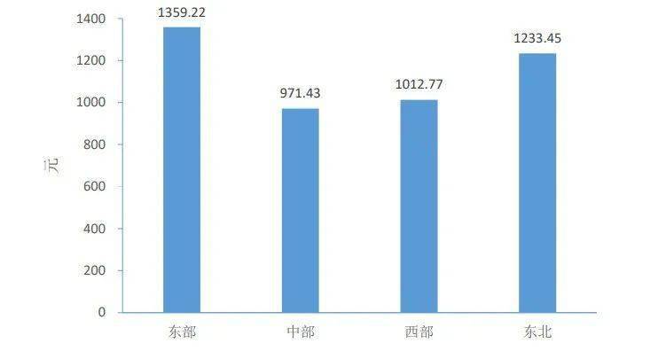 圖13 2020年各區(qū)域國內(nèi)旅游人均消費(fèi)