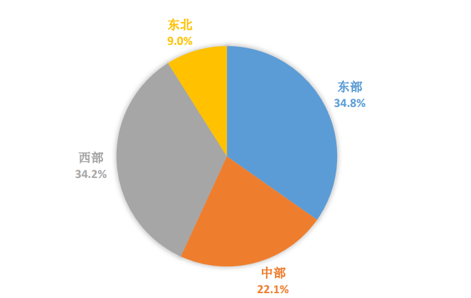 東部區(qū)域旅游景區(qū)資源最為豐裕,擁有全國34.8%的旅游景區(qū)資源。其次是西部區(qū)域,擁有全國34.2%的旅游景區(qū)資源。中部和東北區(qū)域則分別擁有22.1%和9.0%。